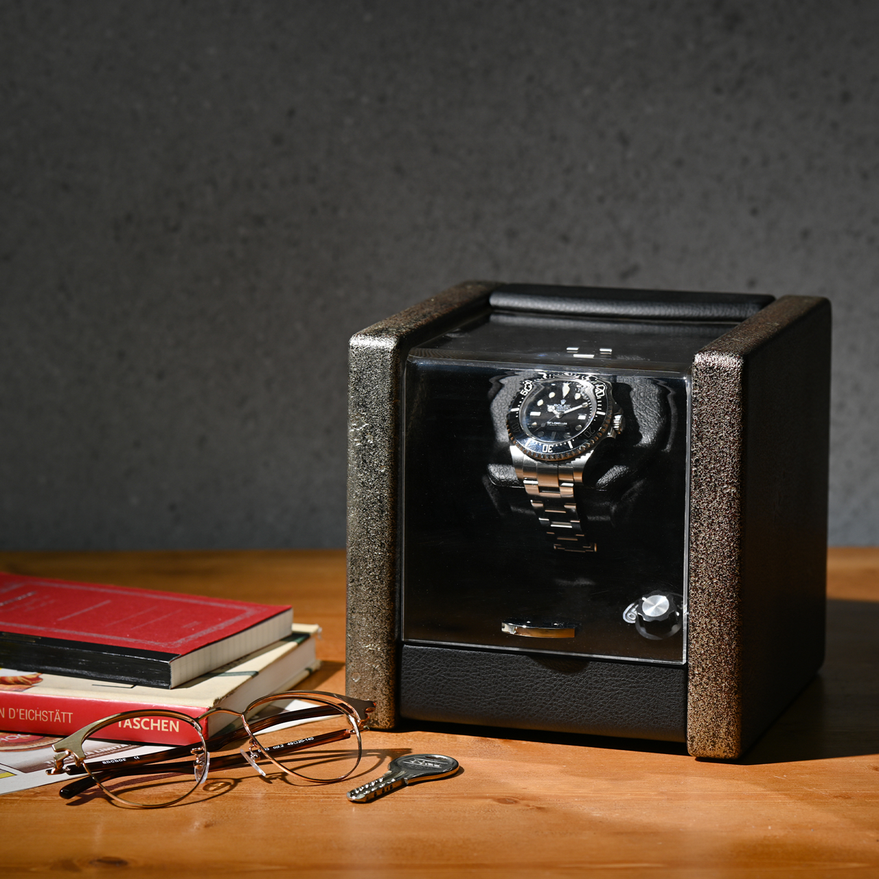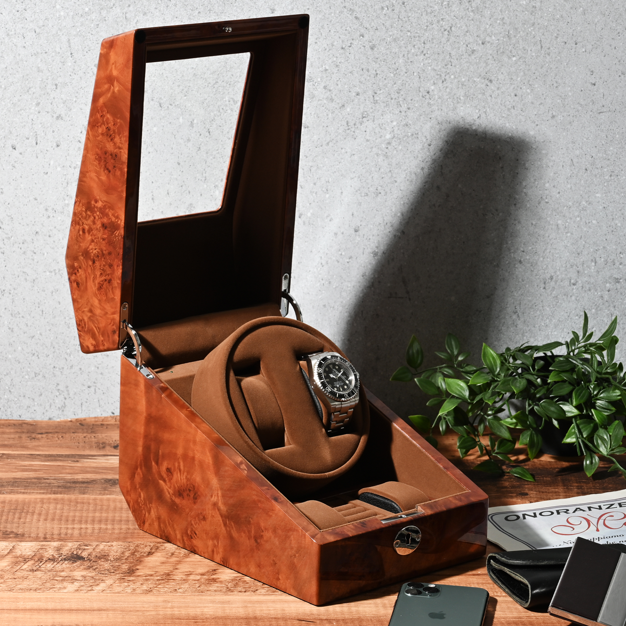 エスプリマは自社工場を持つ時計周辺製品メーカーです。ワインディングマシーンや時計ケースなど、多彩なアイテムを展開し、厳格な品質管理のもと、高度な職人技術で優れた製品を提供しています。